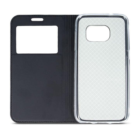 Husa de telefon Smart Look este o combinație de protecție perfectă și stil excelent. Husa este fabricată din material durabil, cu o textură interesantă și plăcută la atingere. Produsul are un interior moale care protejează ecranul de zgârieturi. Partea din spate este rabatată în spate, ceea ce vă permite să setați în mod convenabil capacul într-o poziție orizontală și să vizionați confortabil fotografii sau videoclipuri. Carcasa este închisă cu un magnet ascuns sub suprapunere. În plus, o fereastră prin care puteți verifica ora.